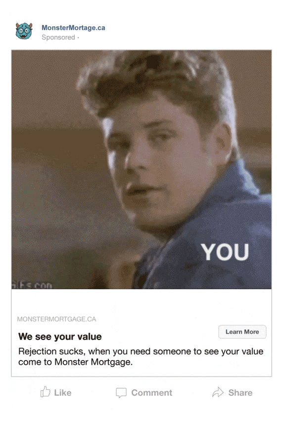 We developed a series of short-form spots and meme-style GIFs designed to feel native to social feeds, human, self-aware, and culturally fluent. The campaign extended into retargeting, where we flipped the narrative and showcased how MonsterMortgage can make you feel (spoiler: it’s good).